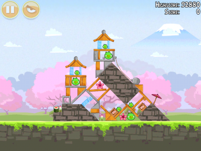 PC のデータをお掃除したり、リアルに洗濯や掃除したりした後は、先日購入した Angry Birds Seasons の桜バージョンにハマってみました。