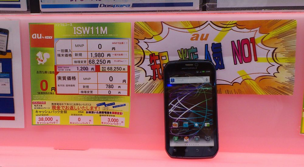 狙いを定めたのは ISW11M という型番になる、MOTOROLA PHOTON。とあるお店では4万円のキャッシュバックだそうですが、1ヵ月以上後に商品券とのことで、38,000円を後日振り込んでくれるというドスパラにて購入することにしました。