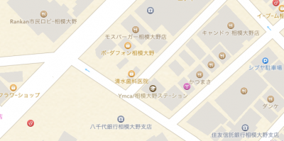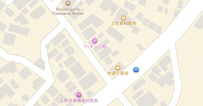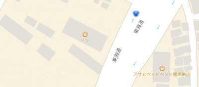 ラーメン二郎 湘南藤沢店は、アイコンが床屋になってます(爆)。っていうか、周辺は全体的にアイコンがおかしい。病院がお買い物になってたり、バーになってます。