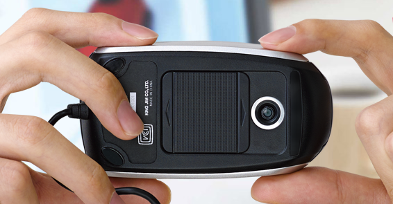 CMS10 というこのモデル、1600×1200 という約200万画素なカメラを内蔵したマウス。大変残念なのは、USB 接続はケーブルレスじゃないこと・・・ワイヤレスで Bluetooth 接続だったら、電池の持ちの心配はあるものの、さらに自由なアングルで楽しめたのに・・・いやぁ、惜しかった・・・