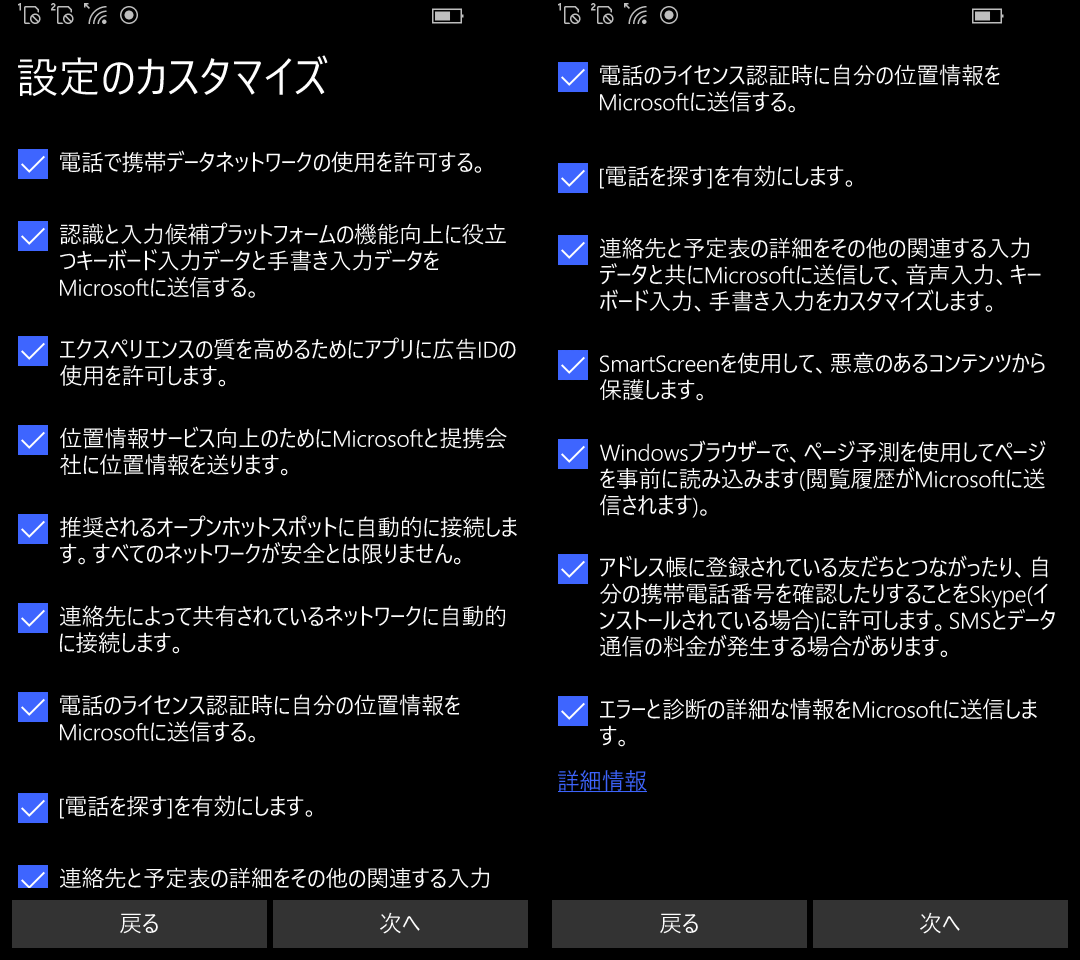 初期設定時に気になったのはこの「コッソリ隠れて色々と情報抜き取るよぉ~」という設定。デフォルトで全部許容状態になっているのですが、気持ち悪いものも多い。ほとんど全部チェックを外しましたw