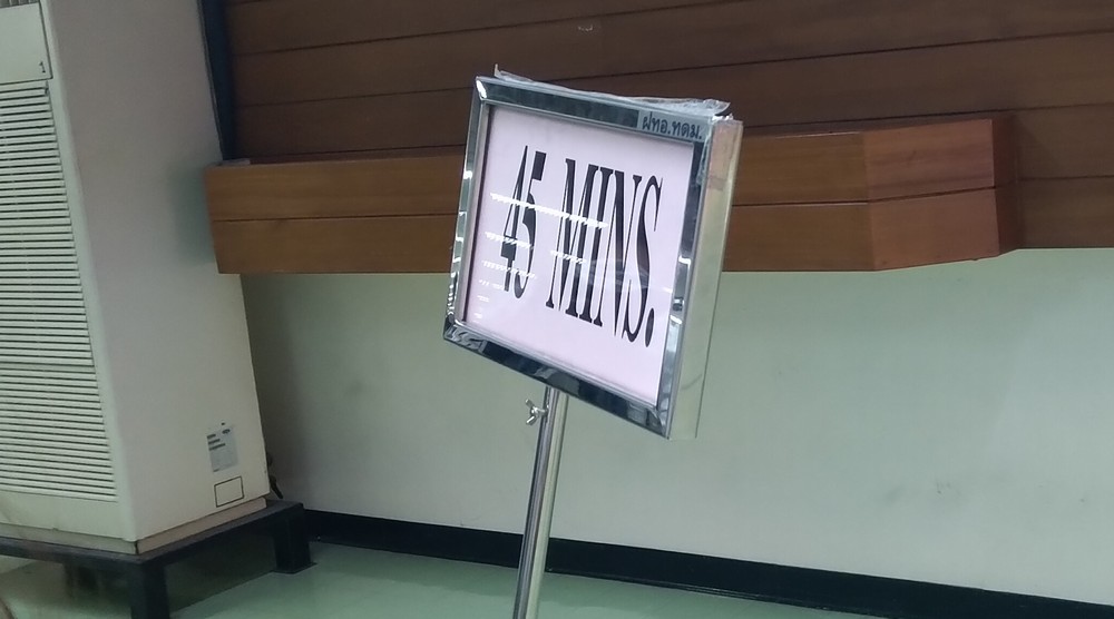 したものの、他の便の入国待ちが大量に残っており、10分ほど待ってようやく45分と書かれた看板に到達。非常に流れが悪かった。
