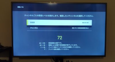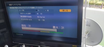 アンテナの調整が済んだら、ケーブルを居間の 4K TV まで接続したケーブルに差し替えまして、受信レベルを確認。見事に故障したアンテナよりも良好な受信レベルを示しておりますな。