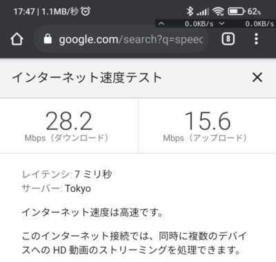 結構バラツキがありますが、VPN を使わない場合の速度はこんな感じ。十分な速度が出ていますな。