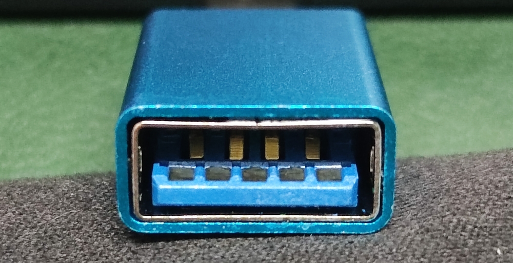 確かに Type-A のコネクタ的には USB3.0 っぽい感じがしますねぇ。(奥の4つだけでなく、手前に5つ追加の接点がみえます。)