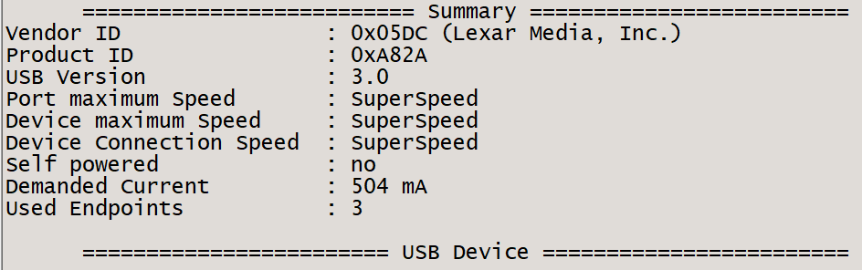 中身は Lexar な Super Talent の USB3.0 な USB メモリを接続して、確認してみると・・・