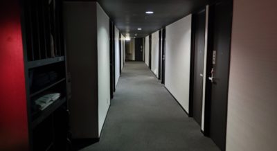 私は7階、相方は8階にアサインされました。エレベーター降りてすぐの棚に枕とか浴衣が置いてあって、自由に選べるようになってました。低反発枕が選べたのが嬉しかったですな。それほど部屋数は多くない感じ。