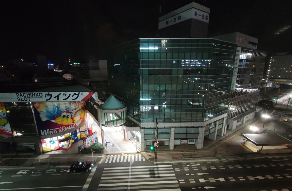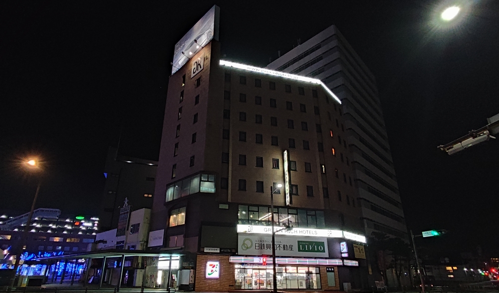 駅近で立地はとっても良いです。駅前のバスロータリーの出口付近にある、グリーンリッチホテル。1階がセブンイレブンになってて、フロントは3階にあります。