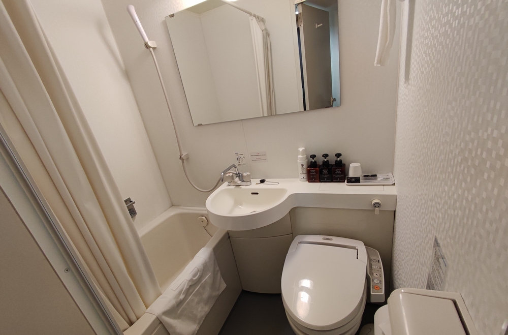 ユニットバスは可もなく不可もなく。シャンプー、リンス、ボディーソープ以外にも洗顔フォームがありました。シャワーの水圧は強く、温度も高いのは良いのですが、結構温度の高低変化が激しい。なんとなく、温水じゃなくて冷水側が急に弱くなったりしがちみたい。