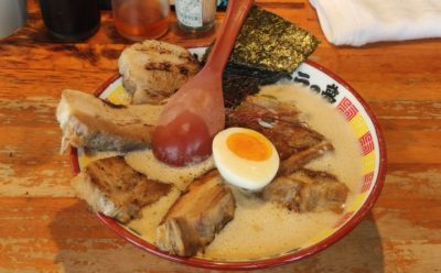 案外ペロリと食べきったけど、スープは塩分がヤバそうなので少し残しました。口の周りがベタベタになって、水で流してもしばらくは口の中と周囲は豚骨に支配され続けました・・・。いやはや、美味しいラーメンでした♪
