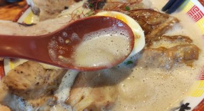 スープは呼称ほどゲル化してなくて、割とサラサラ。しかし、味は超濃厚で、塩分濃度も高めです。見た目のスープ濃度は、相方の「ドロ」と大差なさそうに見えました。