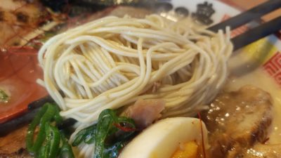麺は自家製という細麺。大分や博多の細麺って、時折食べたくなりますよねー。味の濃いスープに負けず、ちゃんと小麦の風味がするのが素晴らしい。