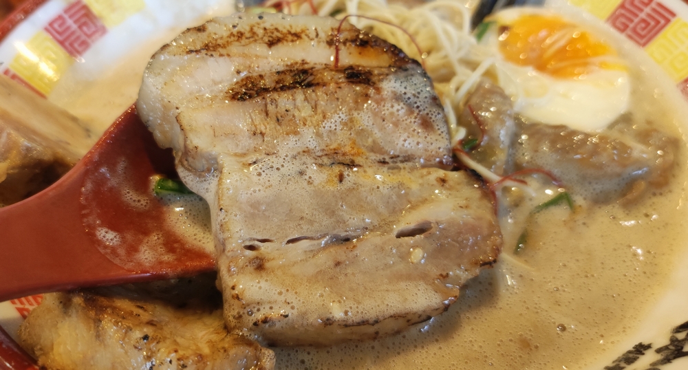 もう1種類は、タレで極限まで煮込んだという軟骨チャーシュー。これは口の中でトロける感じが、寝る前とかだとヤバそうな雰囲気です。ガッツリと染みた味と共に感じるトロトロ感が、満腹中枢へシグナルを送信しちゃいます。3つくらい大きなヤツが入ってましたな。