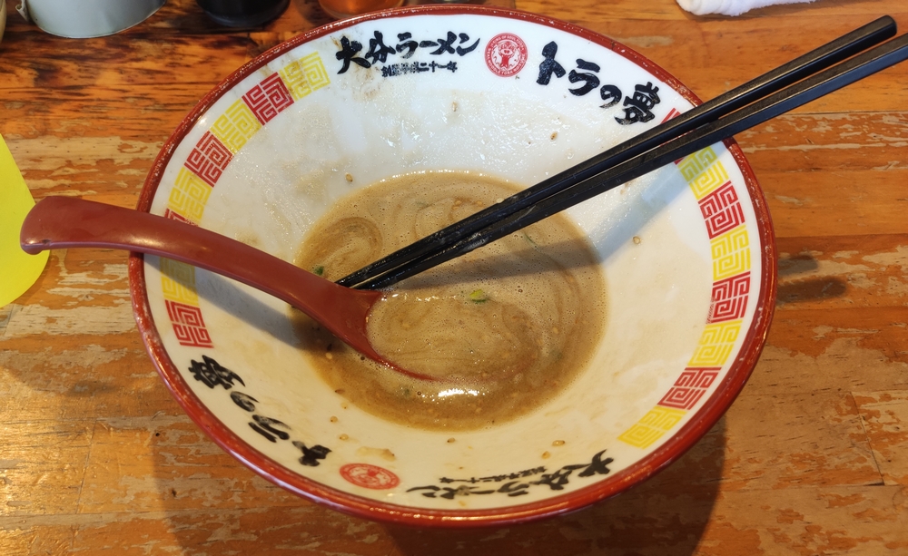 しかし・・・朝ラー(昼だけど)にしてはヘヴィー。店内は小さなお子様連れが多くいて、大分っ子は幼少期から濃厚ラーメンの英才教育がされているな・・・と感銘を受けましたw