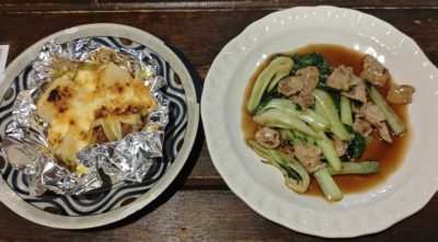 じゃがマヨネーズ焼きと豚肉チンゲン菜オイスター炒め。他にも色々とツマミながら、ビールやサワーで3時間程飲んだ後は・・・