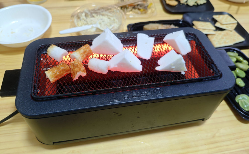 久々の参加となったA城氏が持ち込んだ新兵器。卓上焼き鳥マシンで色々炙っていただきます。ちくわにはんぺん、炙ると異常に旨味アップしてコワイです(笑)。