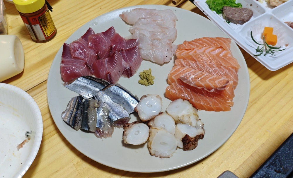 ヒラメとブリは真鯛と一緒に私が調達してきたブツで、他はI川氏調達のモノ。タコが美味しかったですな。