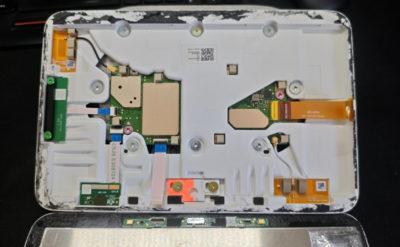 ここまで分解して、一旦ケーブルを戻して電源投入してみると・・・画面は以前の壊れたままながら、タッチ動作もするので、分解としてはうまくできた様子。後は部品が手に入れば・・・復活するかもしれない。とはいえ、画面部品はアリエクでも3000円前後するので積極的には買いに行きません。今後ジャンクな第二世代とかが入手できれば・・・ニコイチとかしてみるかも。