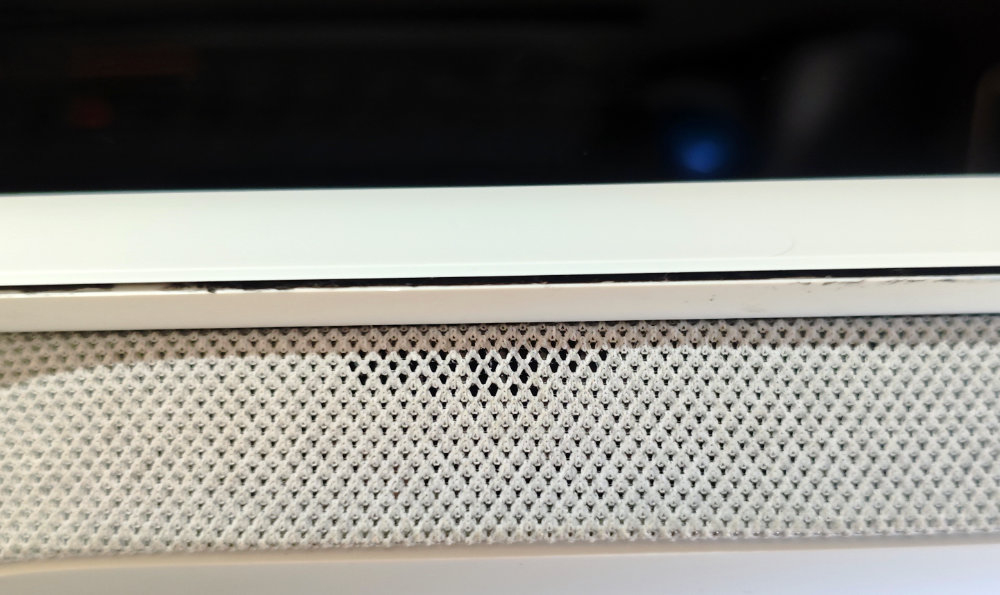 と言いたいトコでしたが、画面下側、台座のファブリック部分が溶けちゃいました。この部分は熱に弱いみたいなので、なにか布とか被せて保護してやらないとダメだったっぽい。まぁ、スピーカーのメッシュ部分なので、多少穴が開いても気にしないで OK かも。