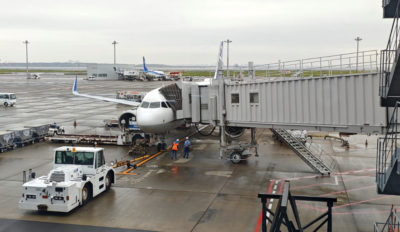 羽田空港に少し早めに着いたので、カードラウンジでコーヒー飲んでからゲートへ。49番ゲートは以前は北側サテライトでしたが、ブリッジでつながって今年3月から徒歩移動で行けるようになった場所。一番北側の保安検査場Aから入りましたが、結構歩きますね~。バス移動よりは楽ですけど。