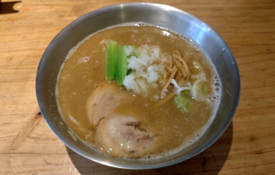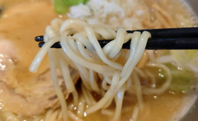 スープは濃厚だけどそこまでクドくない感じは5年前の感想と同様です。麺は細麺というより、ちょっと細めなうどんみたいな感じな扁平したストレート麺でした。跳ねるし、スープとの絡みも少な目なので、このスープならちじれ麺か細麺の方が合うかな・・・と思いました。