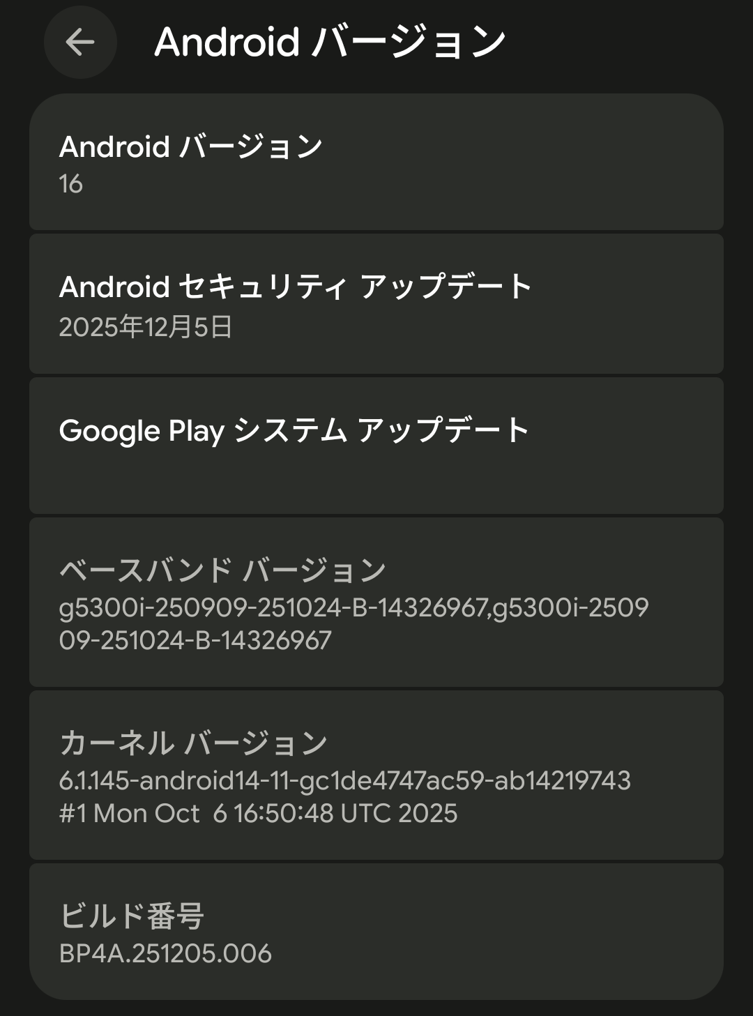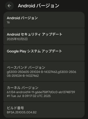 無事に Android 16 になりました。