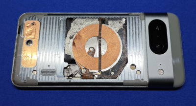 当初はオサイフ機能も重視して入手した Pixel 8 でしたが、現状オサイフ機能は iPhone に集約しているので無くてもイイかな、という判断。むしろ無線充電の方が使う可能性が高いかな、ということで他のスマホの NFC アンテナ移植を断念しました。