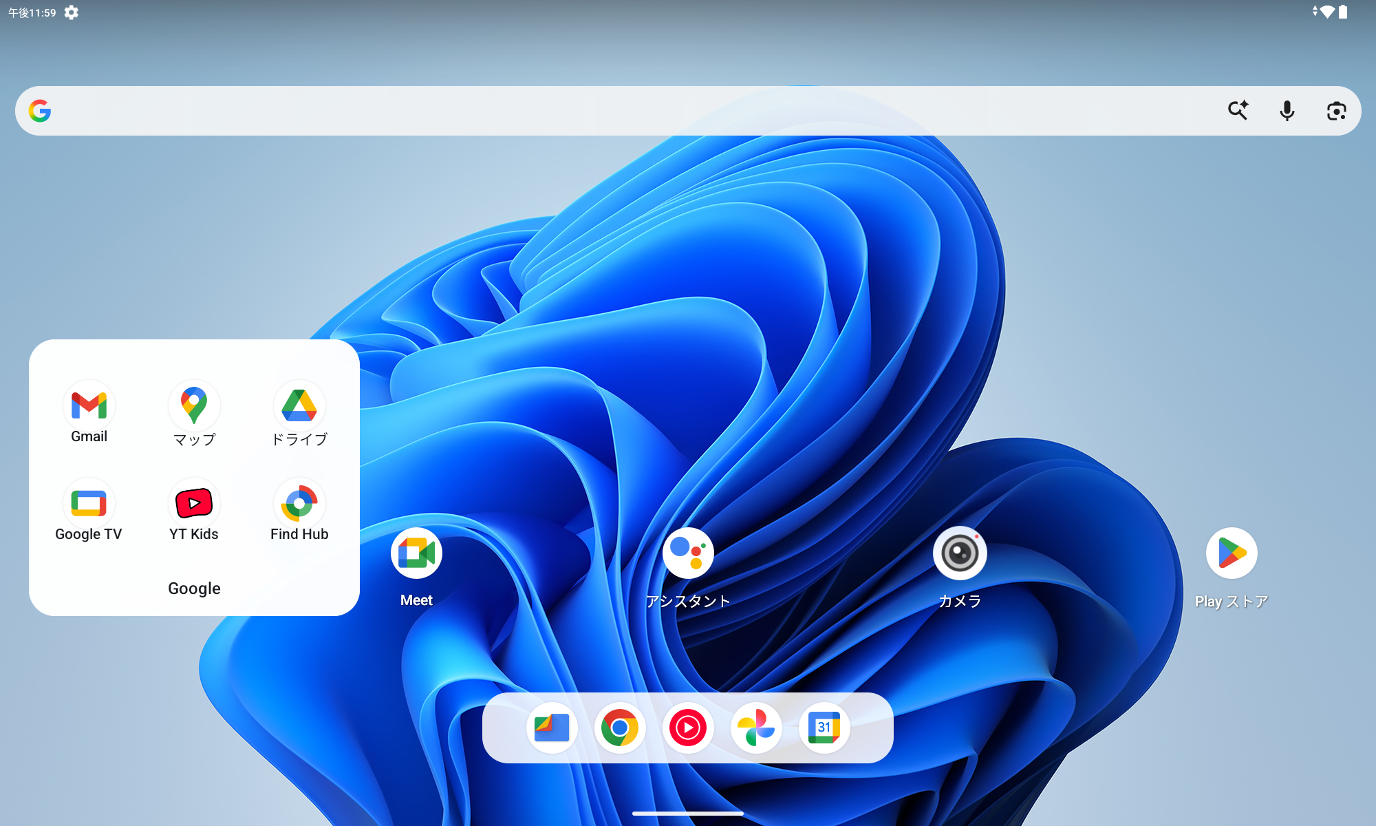 デフォルトではホーム画面は2面。1枚目はこんな感じで、Google のみグループ化されておりました。