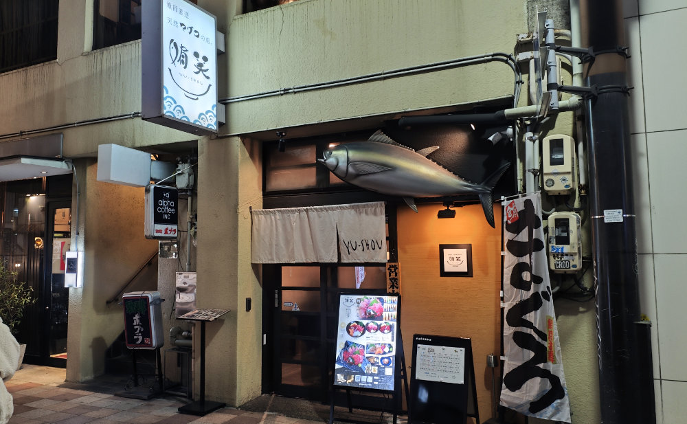 まぐろを食べようということでやってきたのは鮪笑(ゆうしょう)というお店。しかし、予約で満席だというので入店できず。なぜかお土産を戴いて・・・他のお店に行くことに。