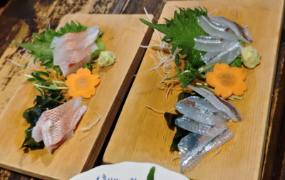 当然お刺身投入。れんこ鯛とサヨリ。関東では珍しいれんこ鯛も甘みが強くて美味しいけど、個人的にはサヨリの方が好みだったりします。どちらもかなり新鮮です♪