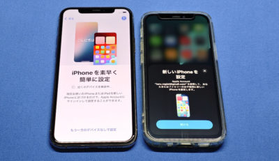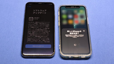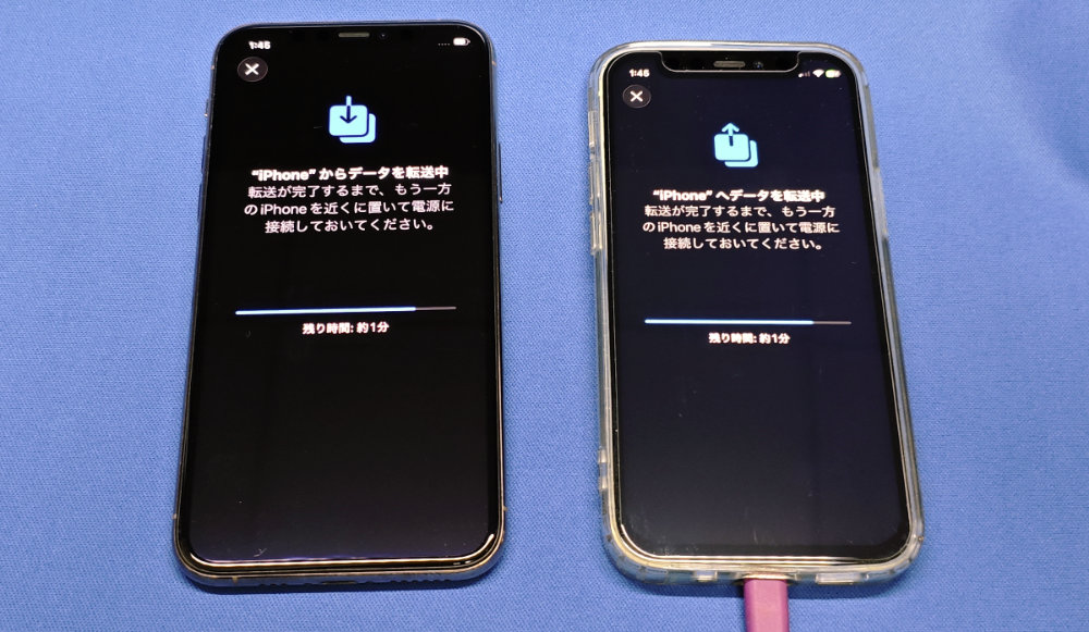 1時間くらい待って、再起動がかかってようやく細かなデータ転送が始まりました。移管元の iPhone 12 mini は事前に満充電にしてなかったので、慌てて充電しながら転送完了を待ちます。