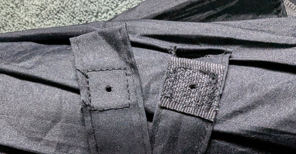 コレも随分と昔に戴いたモノで愛用しているのですが・・・畳んだ時にまとめるベルトについてるベルクロが全く効かなくなって、まとめられなくなっていたのです。長期間使っているので、プラのフック側もボロボロですし、柔らかい繊維側もボロボロ(笑)。