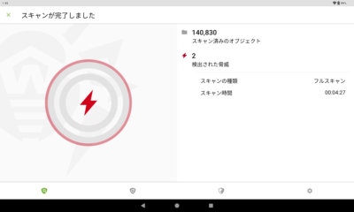 そんなわけで・・・感染しているかコチラを使って確認してみました。何やら2件ほど脅威が検出されました。