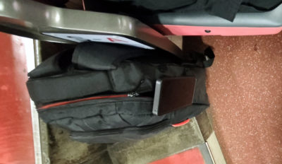 座席横にカバン置ける隙間があったので、置いたカバンの外側にスマホが露出する感じ(カバンのファスナーを少し空けて、そこに MagSafe なリングスタンドを入れて固定)。これでマイクが露出した状態でキープできました。Pixel 8 には録音アプリ入れて、通しで録音担当を任せました。