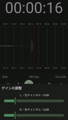 実際にはコレが一番良い音で録れていました。ボリュームは少し小さ目なので、後ほどゲインアップが必要でしたが、高音部もキレイに収まっていたし、低音側は若干の迫力不足ながら割れずに収まっていました。もしかしたら、アプリや設定というよりも Pixel 8 のマイク性能が良いのかも。