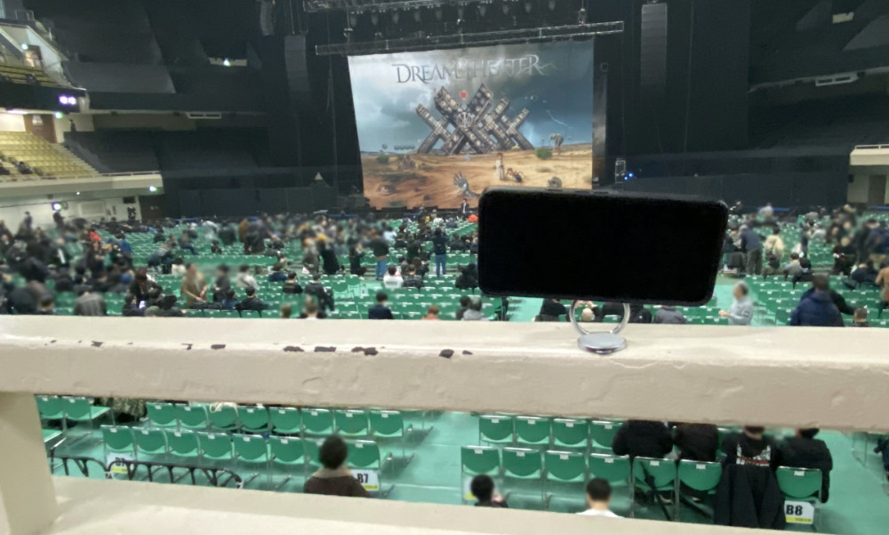まずは録音環境ですが・・・最前列で鉄製の手すりが目の前だったので、磁石でひっつくスマホスタンドで丸々動画撮影とかしてみちゃおうかとも思ったのですが・・・落としたりしたら危ないので止めました。さすがにコレはやっちゃダメですよね(笑)。