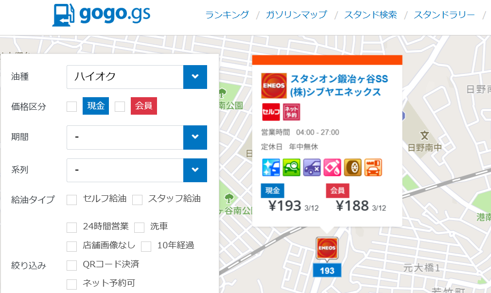 ちなみに gogo.gs で給油した場所の最新価格をチェックしてみたら・・・ニュースになった日の時点で会員価格で188円になっていました。ワタシが給油した時から30円アップという感じで、ニュースのヘッドラインそのままの状況です。いやはや、マジで週末に給油しておいて良かった♪
