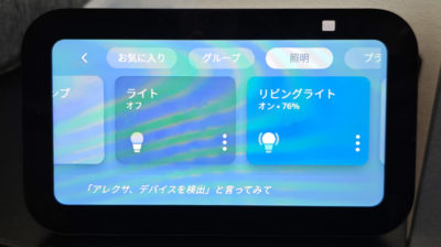 連携している各種デバイスの状態も画面で確認できて便利になるかな・・・と思ったのですが、コレは元々音声での操作をメインにしていたし、リビングでは手の届きにくい場所に配置したのでそれほど重要ではありませんでした。タッチパネルのレスポンスが悪いので、このデバイスは音声操作をメインにして、画面に表示される情報をチラリと見れれば良いかなという感じですな。