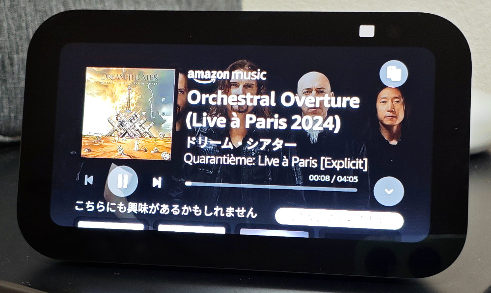 Amazon Music を再生している時に曲名などが表示されるのは嬉しいポイント。Amazon Music Unlimited に加入していないと、指定したアーティストだけでなく「それに似た楽曲」もランダムで再生されちゃうのが難点なんですが・・・この曲なんだっけ?? となる時に画面を見るだけで判明するのは便利です。でも、不要なオススメが邪魔です。とにかく有料サブスクに誘導したい気持ちが強い感じ。