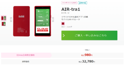この優待券での限定ではなく、以前から IIJmio の利用者限定価格で出ていて気になっていたモバイルルーターである AIR-tra1。980円だけど、なかなか使い道ないかな・・・なんて思ってスルーしていました。