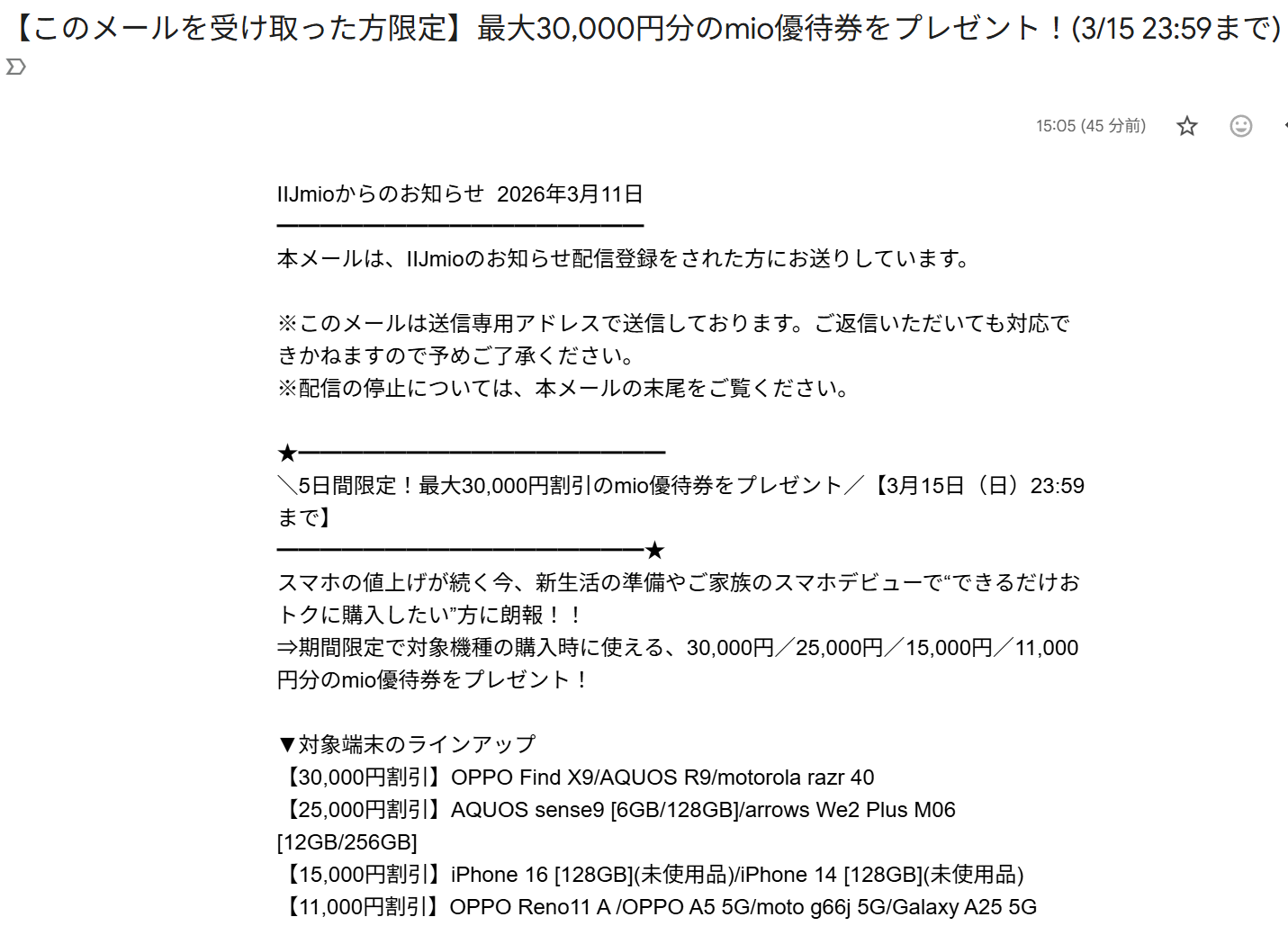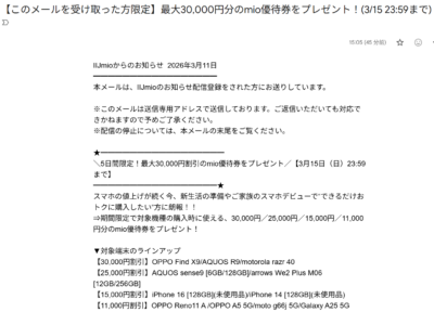 先週のコトですが、光回線とモバイル回線を利用している IIJmio からメールが届きました。