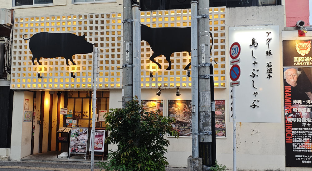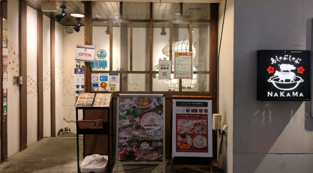 少し早めにホテルを出て国際通りを散策。途中、国際通りから横道に逸れたすぐの場所にある島しゃぶしゃぶ NAKAMA が予約してあるお店。まだ時間あるので、もう少々周辺のお土産屋等を見てから入店です。