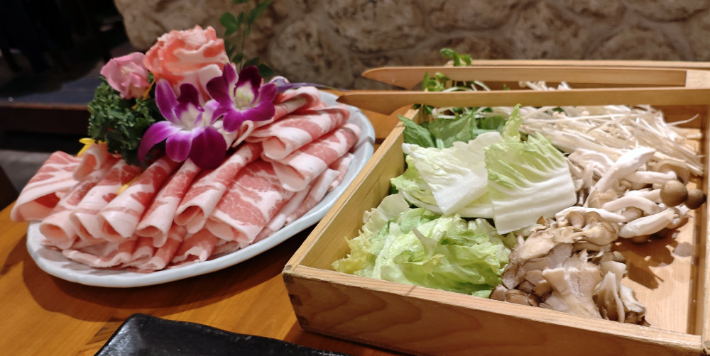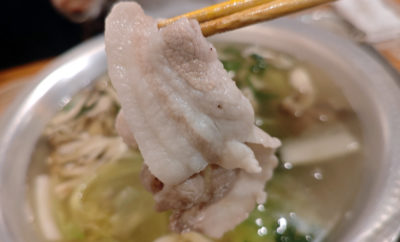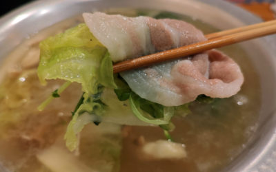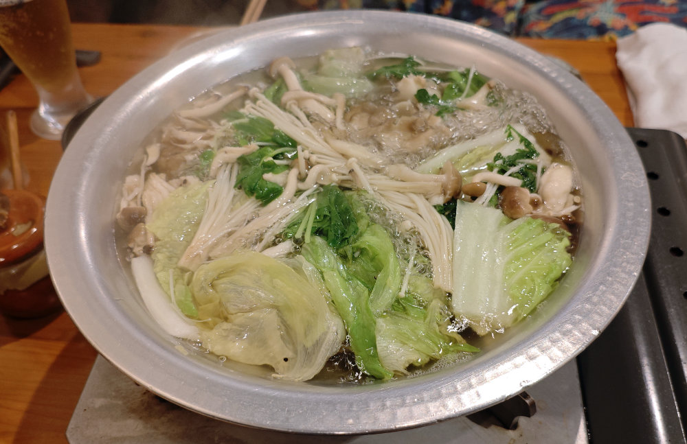 メニューの最初にある美味しく食べるコツを読んでしゃぶしゃぶスタート。まずは野菜を入れて一度沸騰させて、旨味抽出をするそうな。