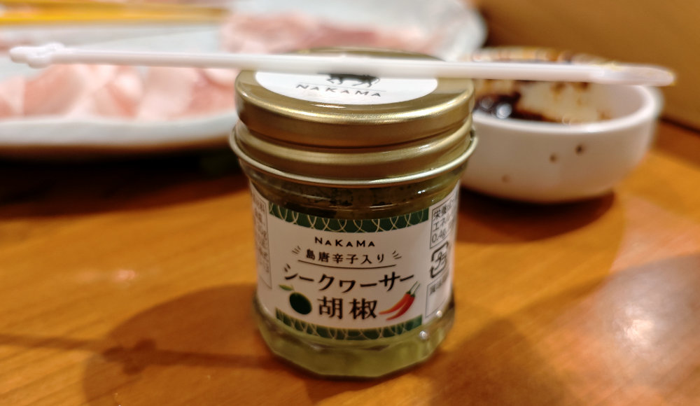 そんな中からシークワーサー胡椒を持ってきました。その前にラー油をゴマだれに入れて担々風とかもやってましたな。シークワーサー胡椒は・・・柚子胡椒とほぼ同等な感じですかね。多少味変しながらお肉を減らしていきます。