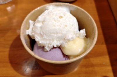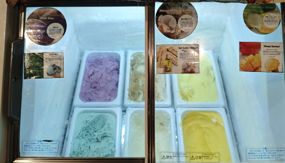 そしてこのお店はアイスクリームも食べ放題。紅芋、黒糖&バニラ、シークワーサー、チョコミント、塩バニラ&ちんすこう、マンゴーの6種類。