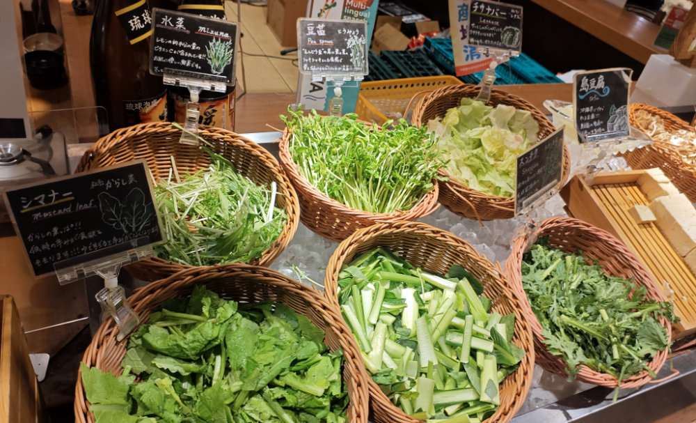 このお店を選んだ理由は、野菜がバイキング方式で好きなものを選べるトコロ。沖縄野菜だけでなく・・