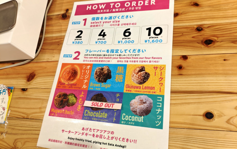 オリジナル(プレーン)とシークヮーサーを各2つで4個パックでオーダー。カウンターでオーダーしてから、しばらく待ってから提供されます。作り置きじゃなくて、揚げたてアツアツをいただけるのは嬉しいですな。
