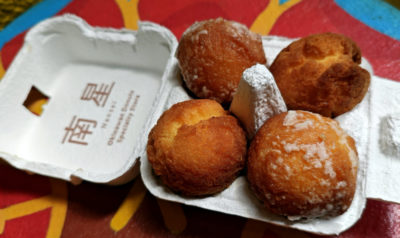 アツアツで美味しい。そんなに甘くないし、軽い感じで腹ペコだと沢山食べちゃいそう。お土産で貰ったりとかしたことはあるけど、アツアツの出来立てを食べるのは初めて。外側はカリッとしてて、中はフンワリ。