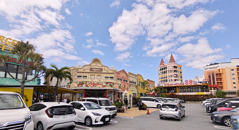 レンタカーでやってきたのはアメリカンビレッジ。色々なショップが集まったエリアなんですが、駐車場が分散しているのと、どこに行っても車が溢れてまして・・・何か所かを彷徨った末にようやく中社できました。日曜日ということもあってか、大変混雑しておりました。