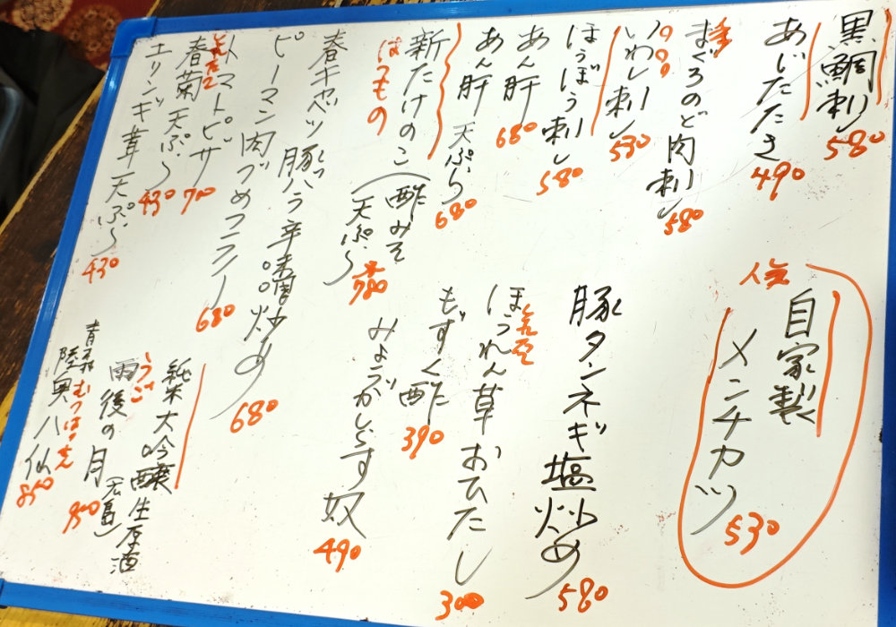 この日のオススメボード。徐々に春らしいメニューになってますな。